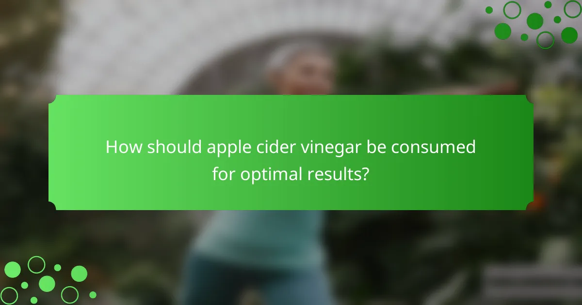 Apple cider vinegar should be consumed diluted in water for optimal results. A common recommendation is to mix 1-2 tablespoons of apple cider vinegar with 8 ounces of water. This method helps reduce acidity and enhances absorption. Consuming it before meals may aid digestion and appetite control. Regular intake can support various health benefits, including blood sugar regulation and weight management.