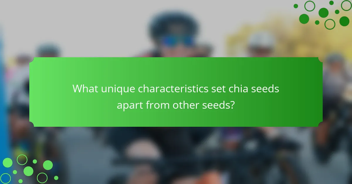 Chia seeds are unique due to their high omega-3 fatty acid content, hydrophilic properties, and versatility in recipes. Their omega-3 content is significantly higher than most seeds, promoting heart health. Chia seeds absorb water, expanding to create a gel-like texture, making them ideal for smoothies and puddings. Additionally, they are a complete protein source, containing all essential amino acids, setting them apart from many other seeds.