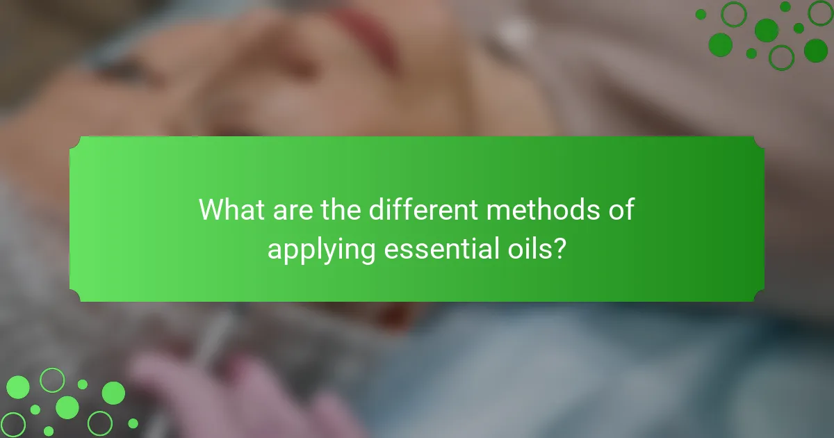 Essential oils can be applied through various methods, including inhalation, topical application, and diffusion. Inhalation involves breathing in the aroma directly or using a steam inhalation method. Topical application requires dilution with a carrier oil before applying to the skin, which enhances absorption and minimizes irritation. Diffusion utilizes a diffuser to disperse essential oils into the air, creating a calming atmosphere. Each method offers unique benefits for stress relief and pain management, catering to individual preferences and needs.