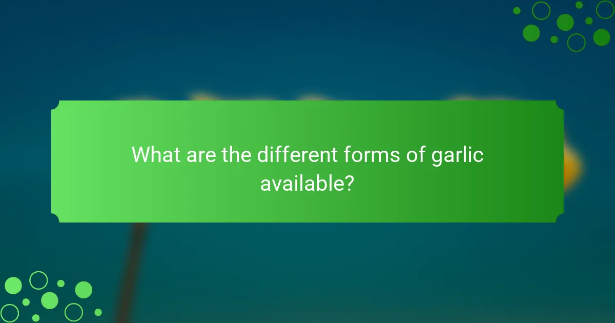 Garlic is available in several forms, including fresh, dried, powdered, and oil. Fresh garlic offers the strongest flavor and health benefits, while dried garlic is convenient for storage. Garlic powder provides a concentrated flavor, and garlic oil is used for cooking and health applications. Each form retains varying levels of garlic’s antimicrobial properties and health benefits, making them versatile for culinary uses.
