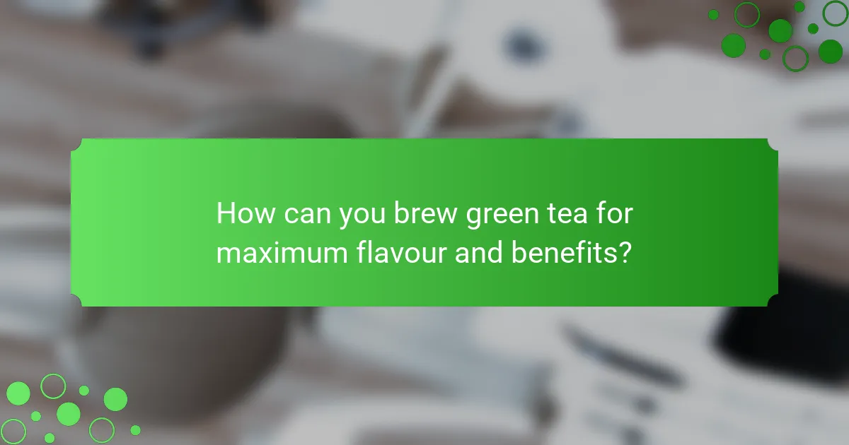 To brew green tea for maximum flavour and benefits, use water heated to 160-180°F and steep for 2-3 minutes. This method preserves antioxidants while enhancing taste.