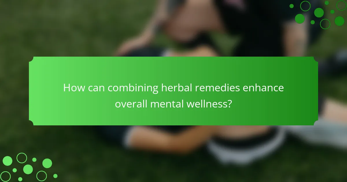 Combining herbal remedies can significantly enhance overall mental wellness by addressing anxiety and improving sleep quality. Herbal remedies like chamomile and valerian root are known for their calming effects, which can reduce stress and promote relaxation.