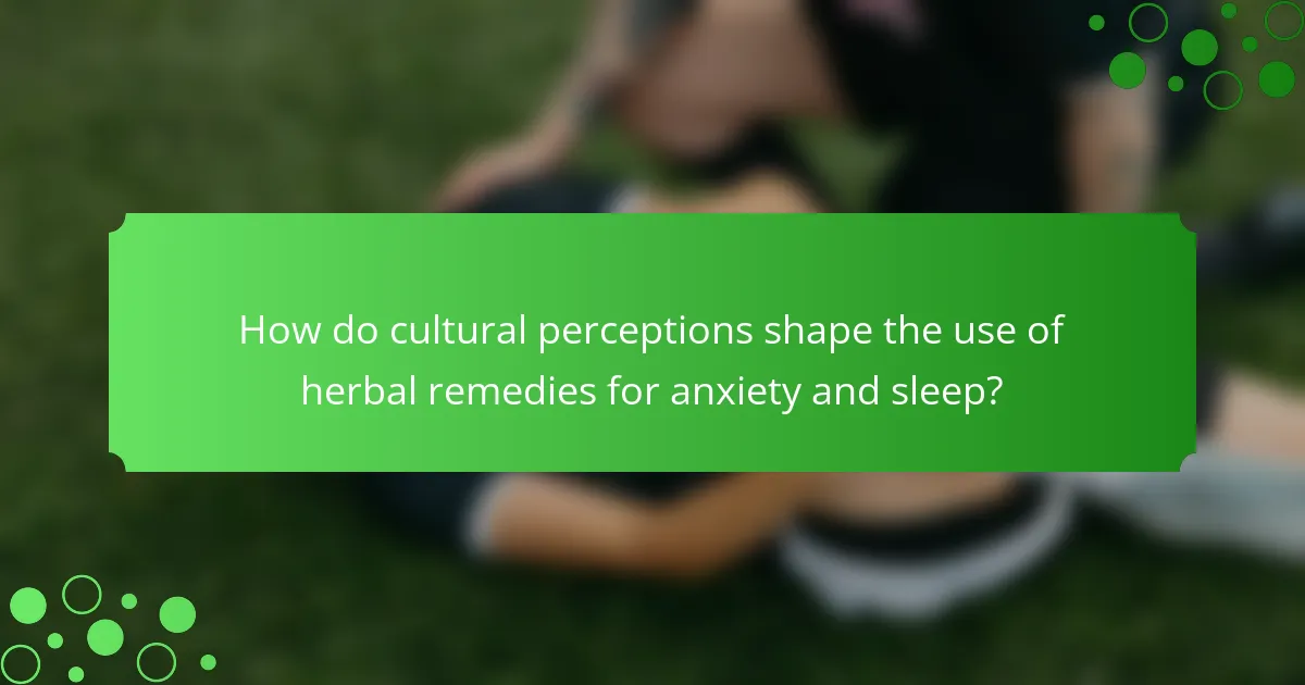 Cultural perceptions significantly influence the use of herbal remedies for anxiety and sleep. In many cultures, herbal remedies are viewed as natural alternatives to pharmaceuticals, promoting a holistic approach to mental health.