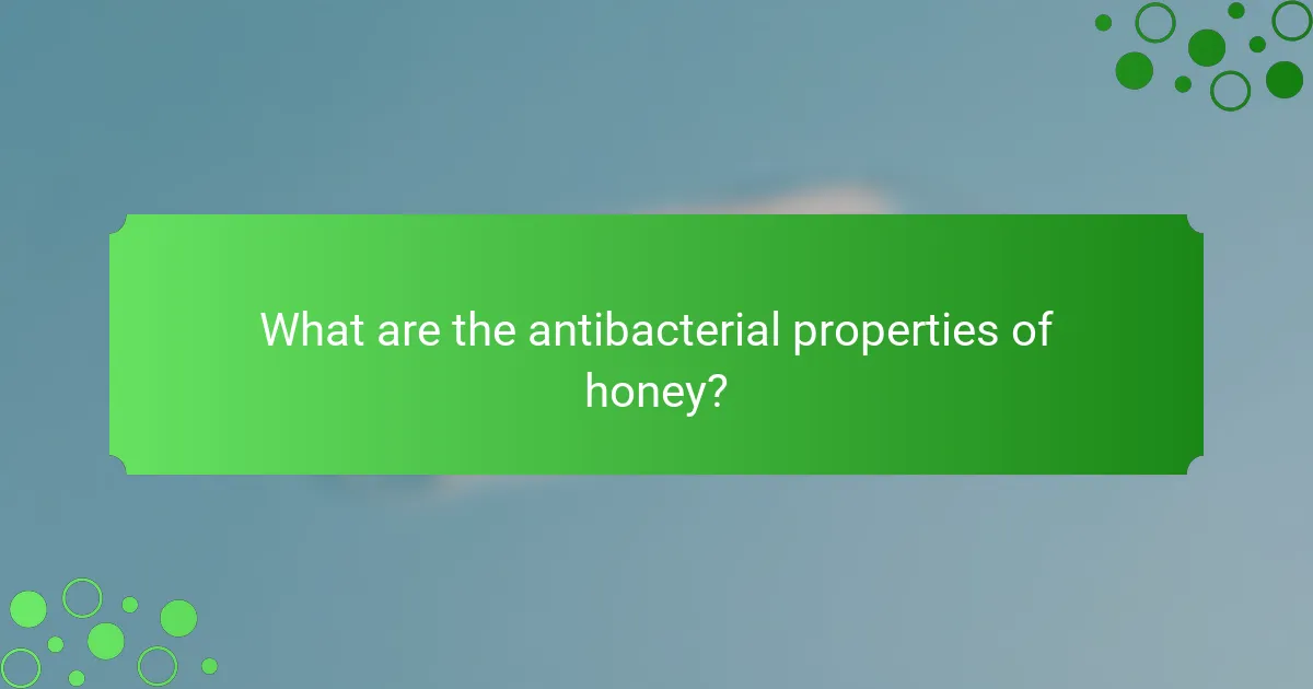 Honey exhibits significant antibacterial properties due to its natural composition, including hydrogen peroxide and low moisture content. These characteristics inhibit the growth of harmful bacteria. Research shows that honey can effectively combat various pathogens, including E. coli and Staphylococcus aureus. Additionally, honey’s unique attribute, methylglyoxal, enhances its antibacterial efficacy, particularly in Manuka honey. Regular use of honey in wound care can promote healing and reduce infection risk.