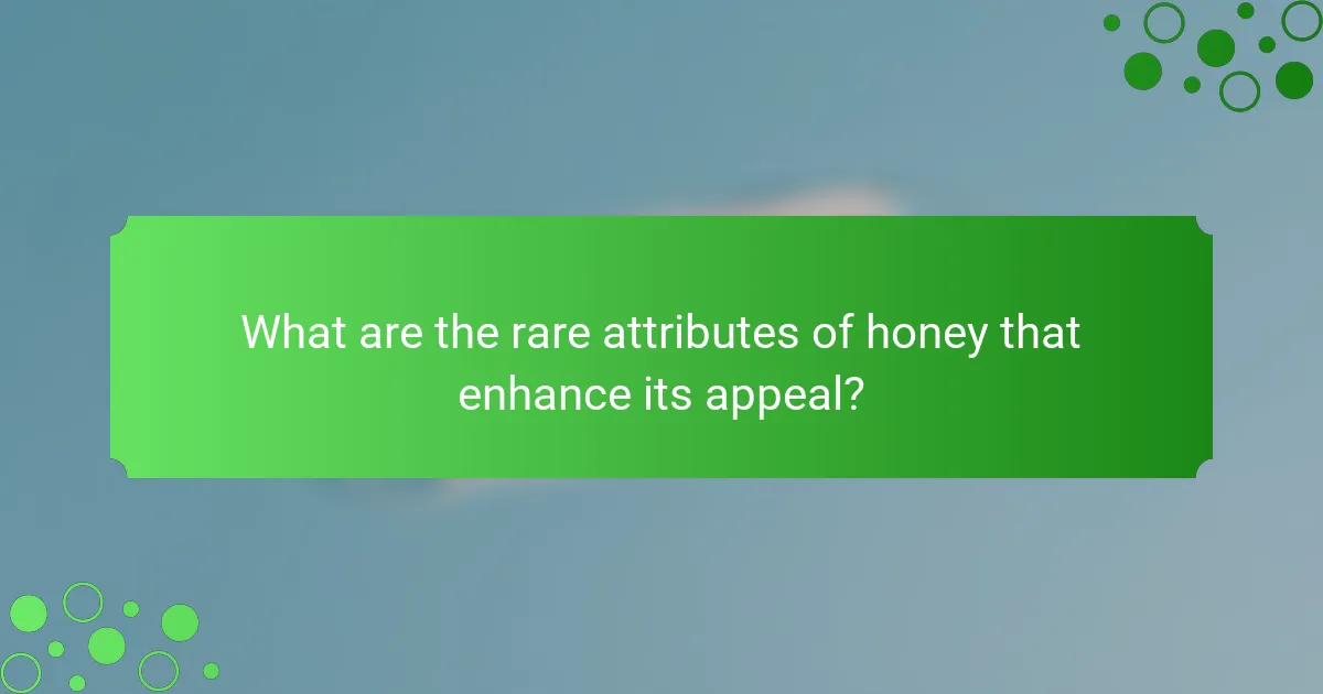 Honey possesses rare attributes that enhance its appeal, including unique antibacterial compounds, diverse flavor profiles, and specific regional varieties. These characteristics contribute to its health benefits and culinary versatility.