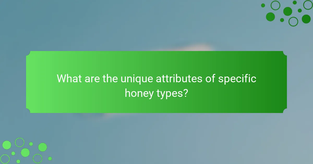 Specific honey types possess unique attributes that enhance their antibacterial properties and health benefits. Manuka honey contains methylglyoxal, a compound that significantly boosts its antibacterial effectiveness. Buckwheat honey is rich in antioxidants, providing additional health benefits like improved immune function. Clover honey has a milder flavor and is often used for its soothing properties in cough remedies. Acacia honey is known for its high fructose content, which helps it remain liquid longer, making it ideal for sweetening beverages. Each type’s distinct characteristics contribute to its specific uses and health advantages.