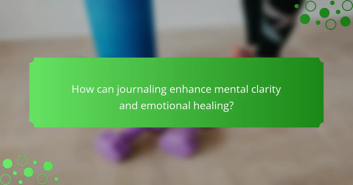 Journaling enhances mental clarity and emotional healing by providing a structured outlet for thoughts and feelings. This practice encourages self-reflection, helping individuals identify patterns and triggers. Writing regularly can reduce anxiety and improve mood by allowing for emotional expression. Studies show that journaling can lead to increased self-awareness and cognitive processing, contributing to overall mental well-being.