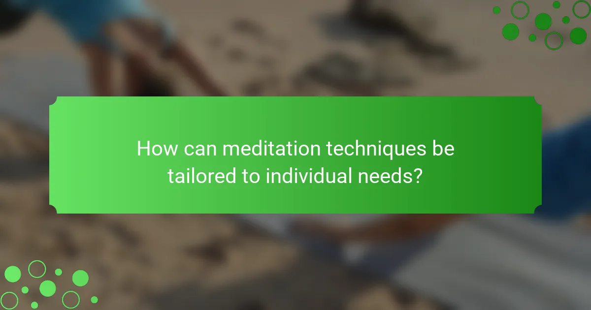 Meditation techniques can be effectively tailored to individual needs by assessing personal stress triggers and emotional states. Customization enhances the benefits of meditation, making it more impactful.