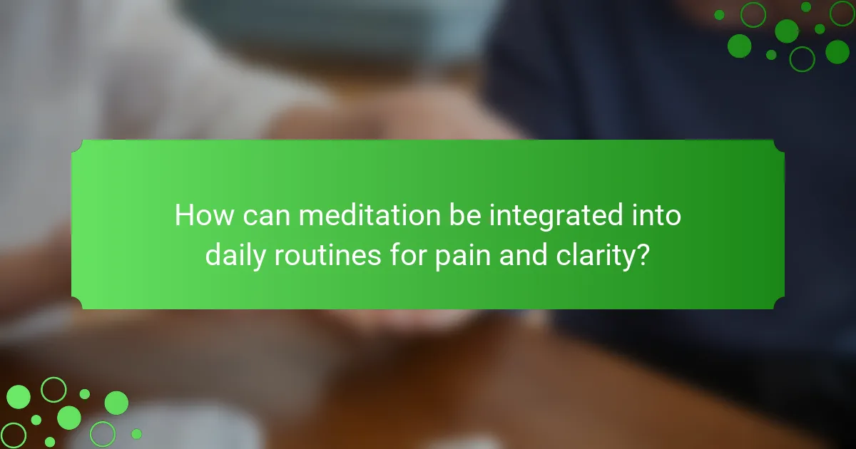 Meditation can be seamlessly integrated into daily routines to enhance pain management and mental clarity. Incorporating short meditation sessions, such as five to ten minutes in the morning or during breaks, can significantly reduce chronic pain and improve focus.
