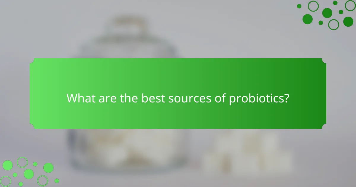 The best sources of probiotics include fermented foods and dietary supplements. Fermented foods such as yogurt, kefir, sauerkraut, kimchi, and miso provide live cultures beneficial for gut health. Dietary supplements offer a concentrated dose of specific probiotic strains. Consuming a variety of these sources can enhance gut flora diversity and support overall digestive health.