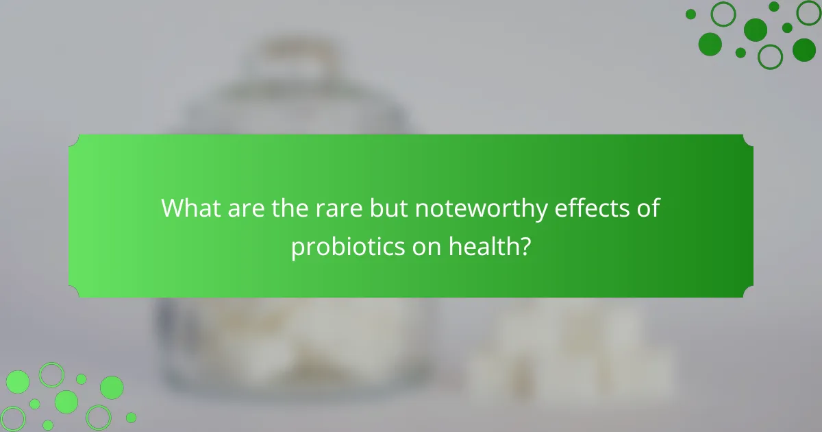Probiotics can lead to rare but noteworthy effects on health, including enhanced immune function and improved mood. Some strains, like Lactobacillus rhamnosus, may reduce anxiety levels. Others, such as Bifidobacterium longum, have been linked to cognitive benefits. Additionally, certain probiotics may help in managing eczema and allergies, showcasing their diverse potential. It is essential to choose specific strains for targeted health outcomes.