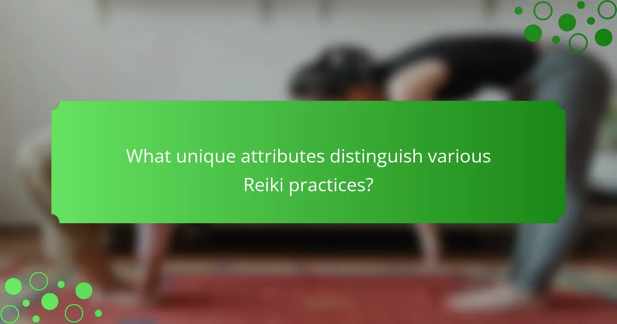 Various Reiki practices are distinguished by unique attributes such as techniques, symbols, and focus areas. For instance, Usui Reiki emphasizes traditional hand positions, while Karuna Reiki incorporates specific symbols for healing. Additionally, some practices like Kundalini Reiki focus on energy awakening, differing from the stress-reduction focus of others. Each style offers distinct approaches to energy balance, appealing to diverse preferences and needs.