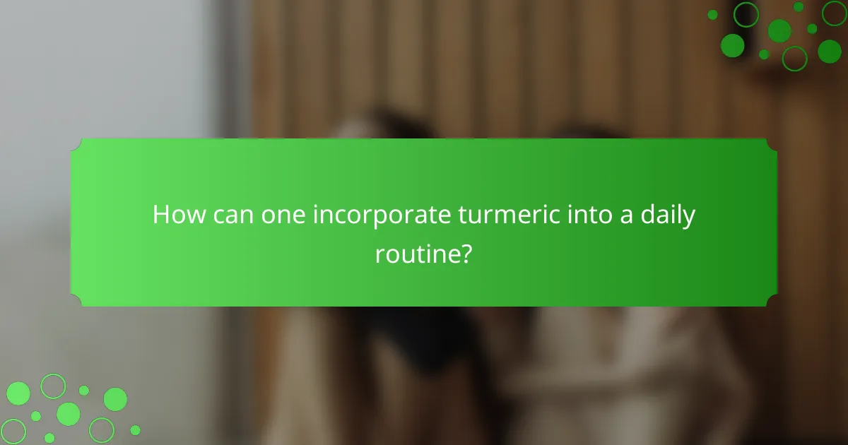 Incorporating turmeric into a daily routine can enhance health through its anti-inflammatory properties. Consider these methods for intake: