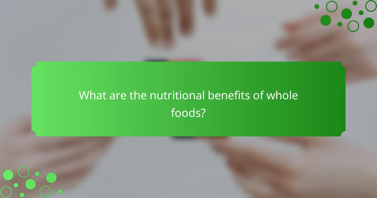 Whole foods significantly enhance overall health by providing essential nutrients, supporting meal planning, and aiding chronic condition management. They are rich in vitamins, minerals, and antioxidants that contribute to improved immune function and reduced inflammation.