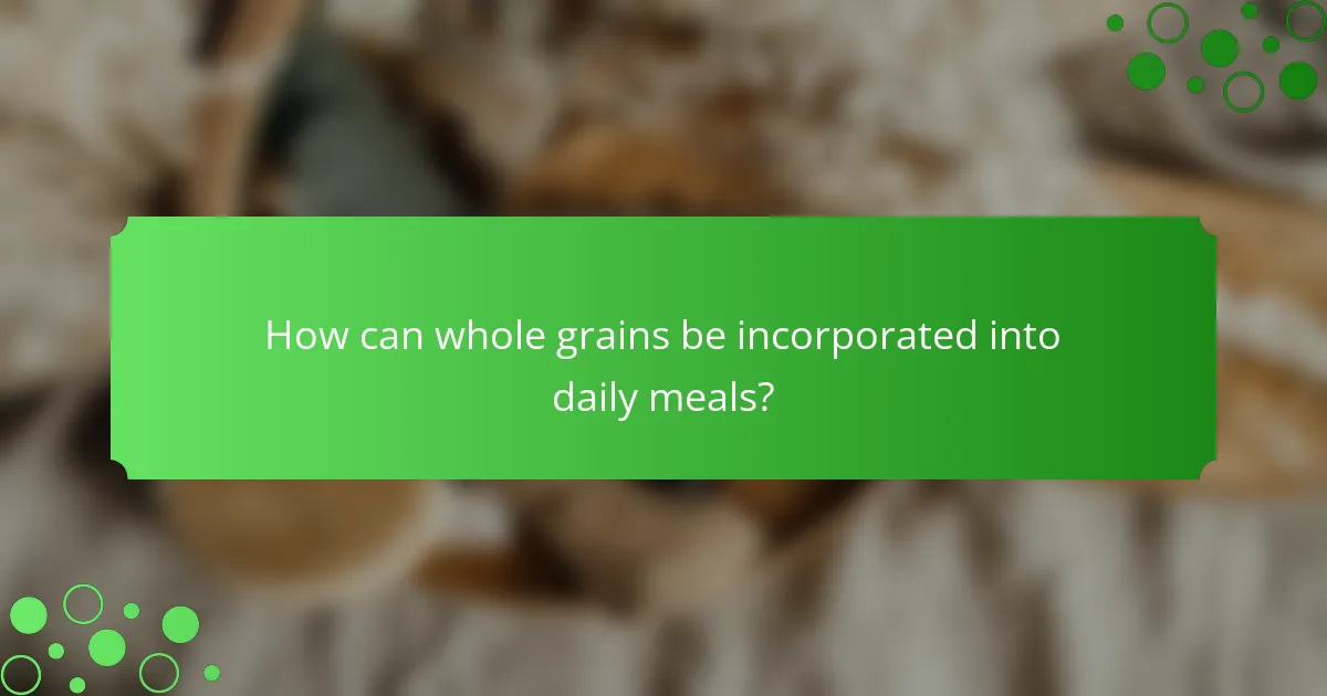 Whole grains can be easily incorporated into daily meals by adding them to various dishes. Start your day with oatmeal or whole grain cereal. Use whole grain bread for sandwiches or toast. Incorporate brown rice or quinoa as a side dish. Add whole grain pasta to salads or main courses. Snack on popcorn or whole grain crackers. Lastly, consider using whole grain flour in baking. These options provide essential nutrients and fibre, enhancing overall health.