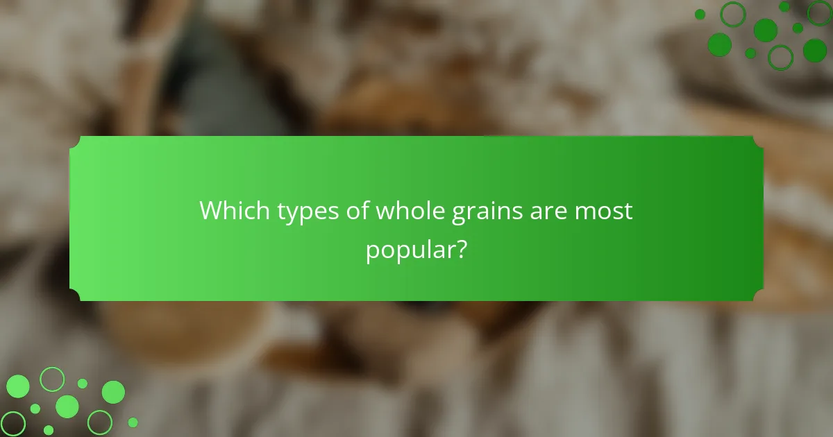 The most popular types of whole grains include brown rice, quinoa, oats, barley, and whole wheat. These grains are favoured for their nutritional benefits and versatility in cooking. Brown rice is a staple in many diets, providing fibre and essential nutrients. Quinoa is known for its complete protein profile, making it a favourite among vegetarians. Oats offer heart health benefits and are commonly used in breakfast foods. Barley is recognised for its high fibre content and is often used in soups. Whole wheat is widely used in various baked goods, contributing to a balanced diet.