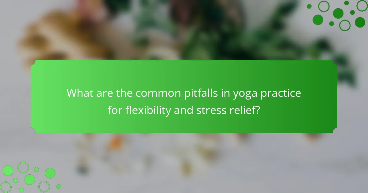 Common pitfalls in yoga practice for flexibility and stress relief include overexertion, neglecting proper alignment, and inconsistent practice. Overexertion can lead to injuries, hindering progress. Proper alignment is crucial; poor form can cause strain rather than relief. Inconsistent practice fails to build the necessary flexibility and stress management skills. Additionally, focusing solely on physical postures without integrating breathwork can limit stress reduction benefits. Prioritizing a balanced approach enhances both flexibility and stress relief outcomes.