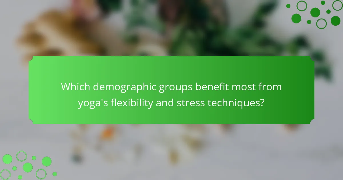 Which demographic groups benefit most from yoga’s flexibility and stress techniques?